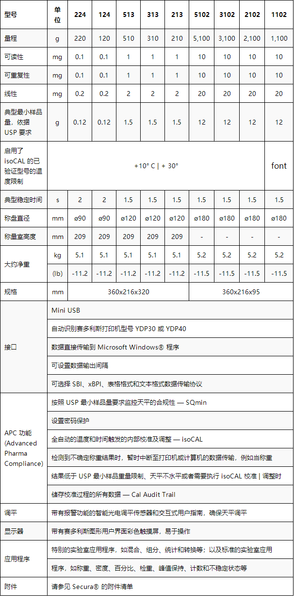 全新的Secura 系列電子天平符合 USP 最小樣品量要求, 確保了操作過程的一律可靠性。