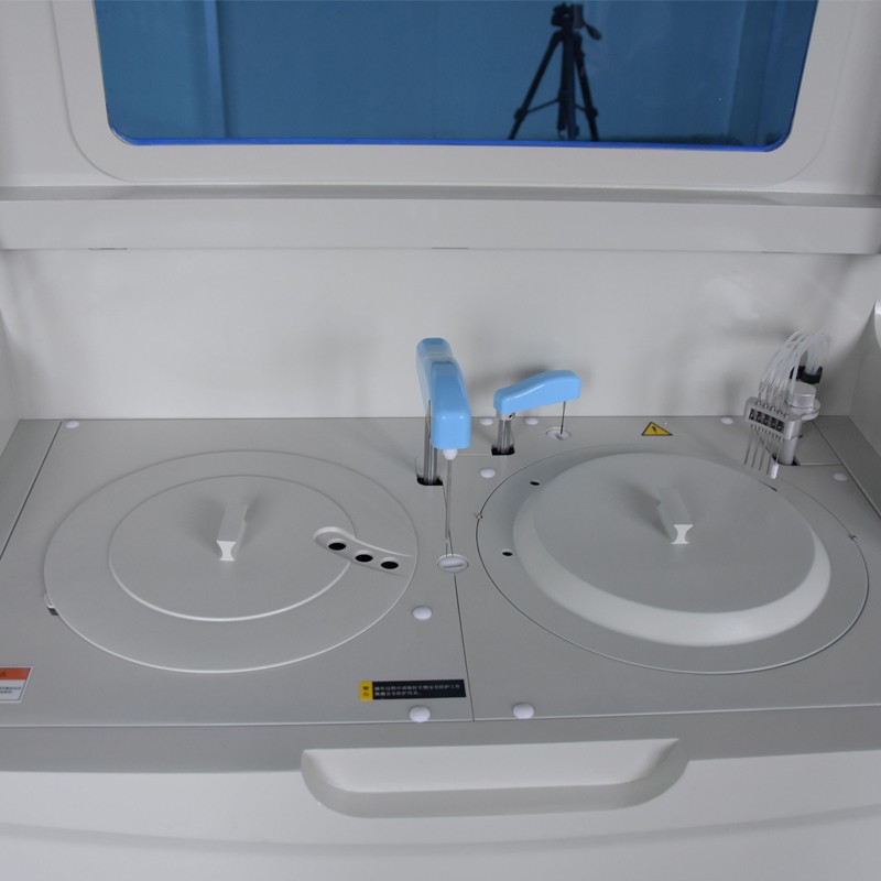 11、試劑盤:56個試劑位,最大可同時分析56個生化試劑項目;同一項目可安排多個試劑位,第一個報警缺少試劑時自動到第二試劑位抽取試劑,依次類推。